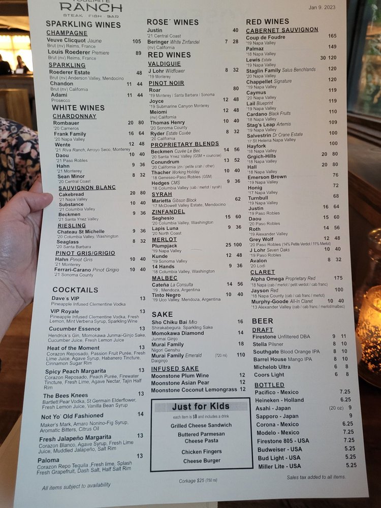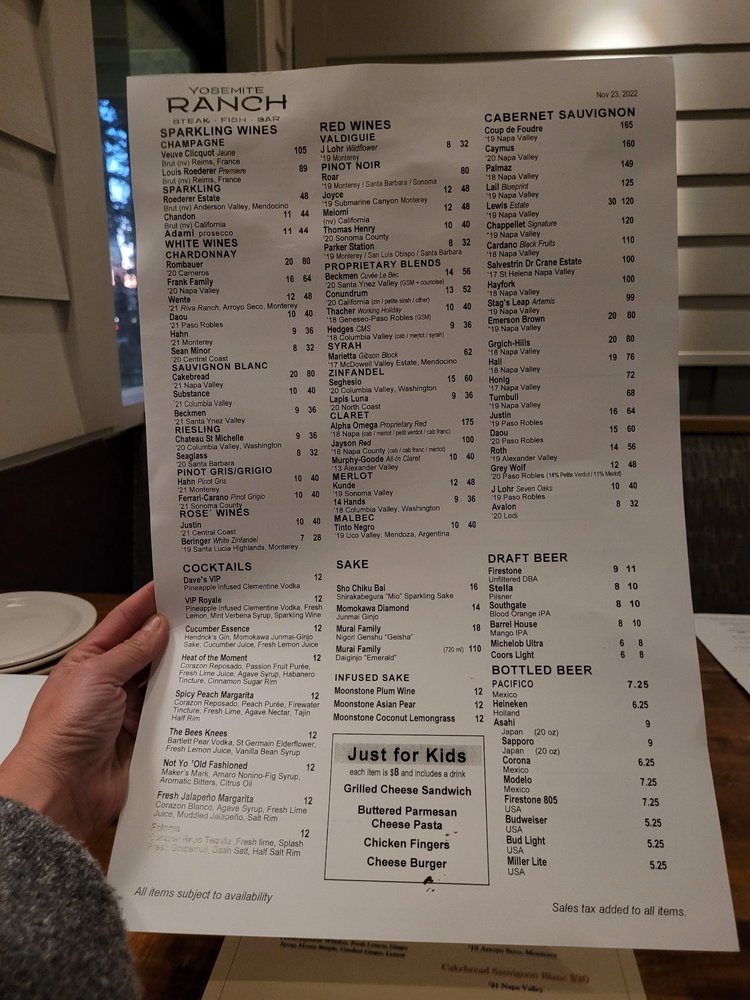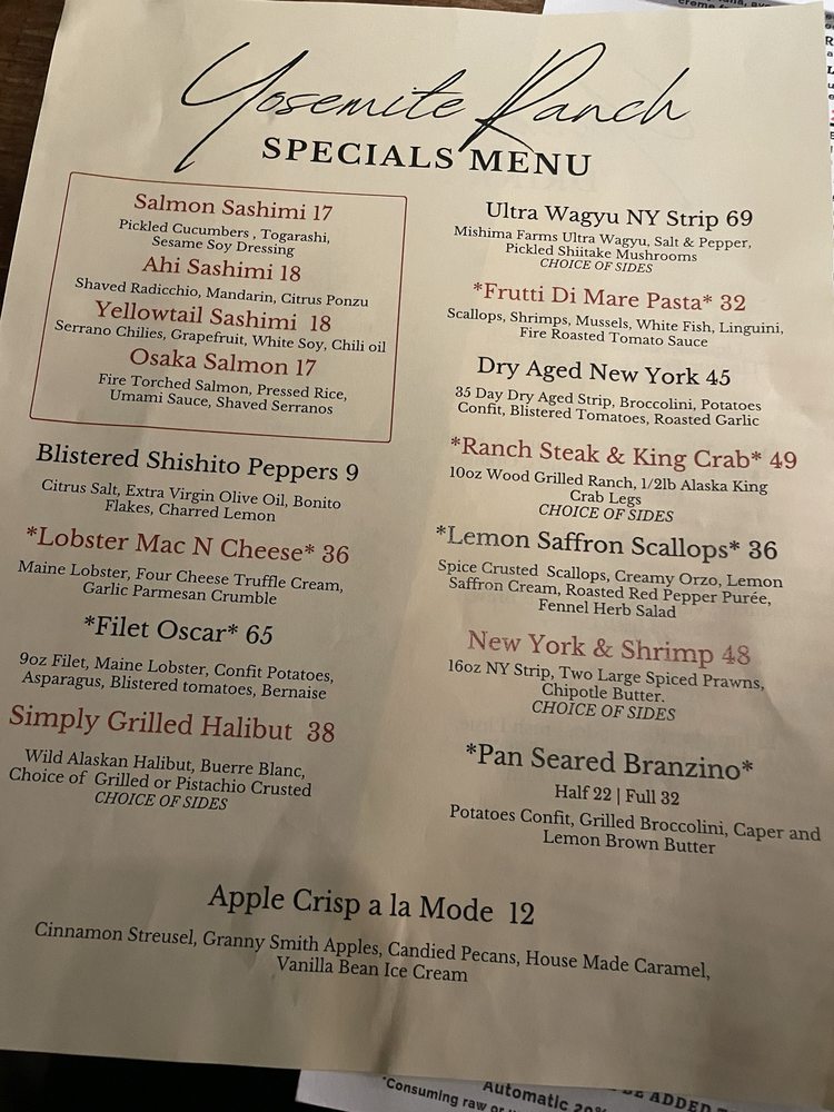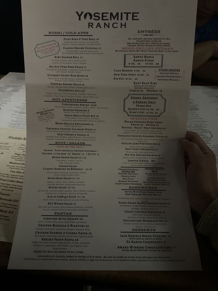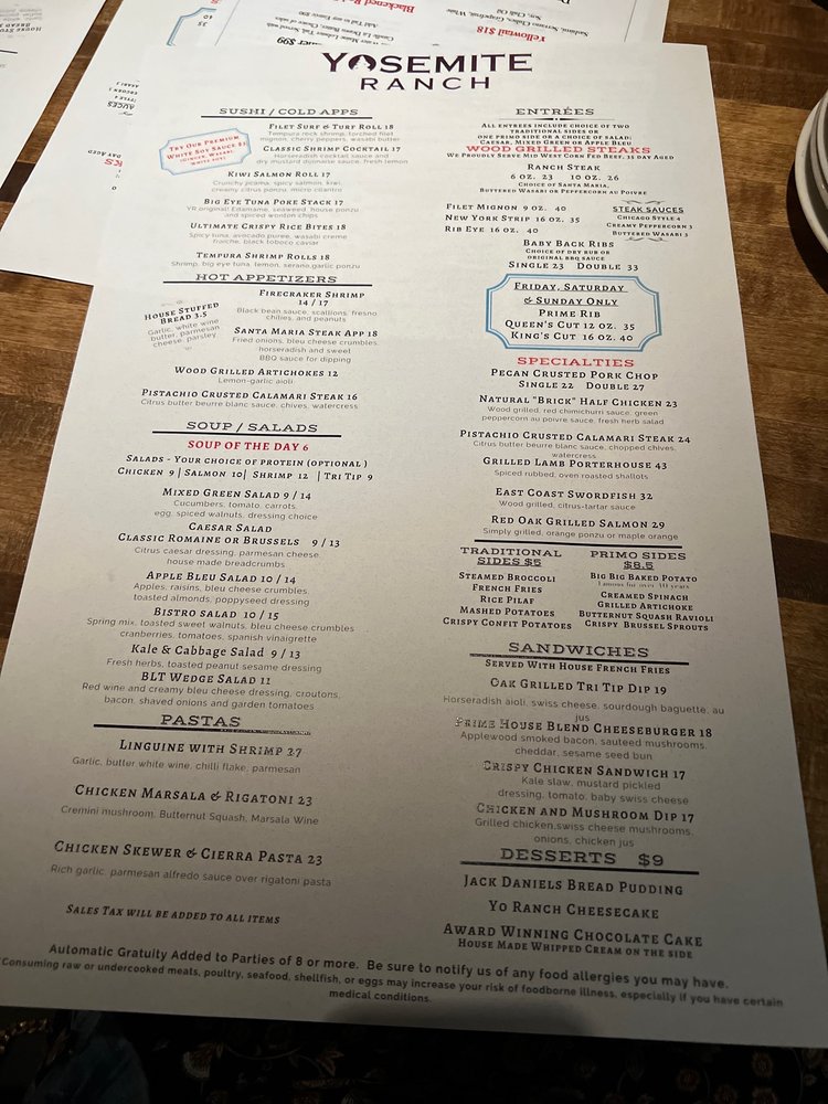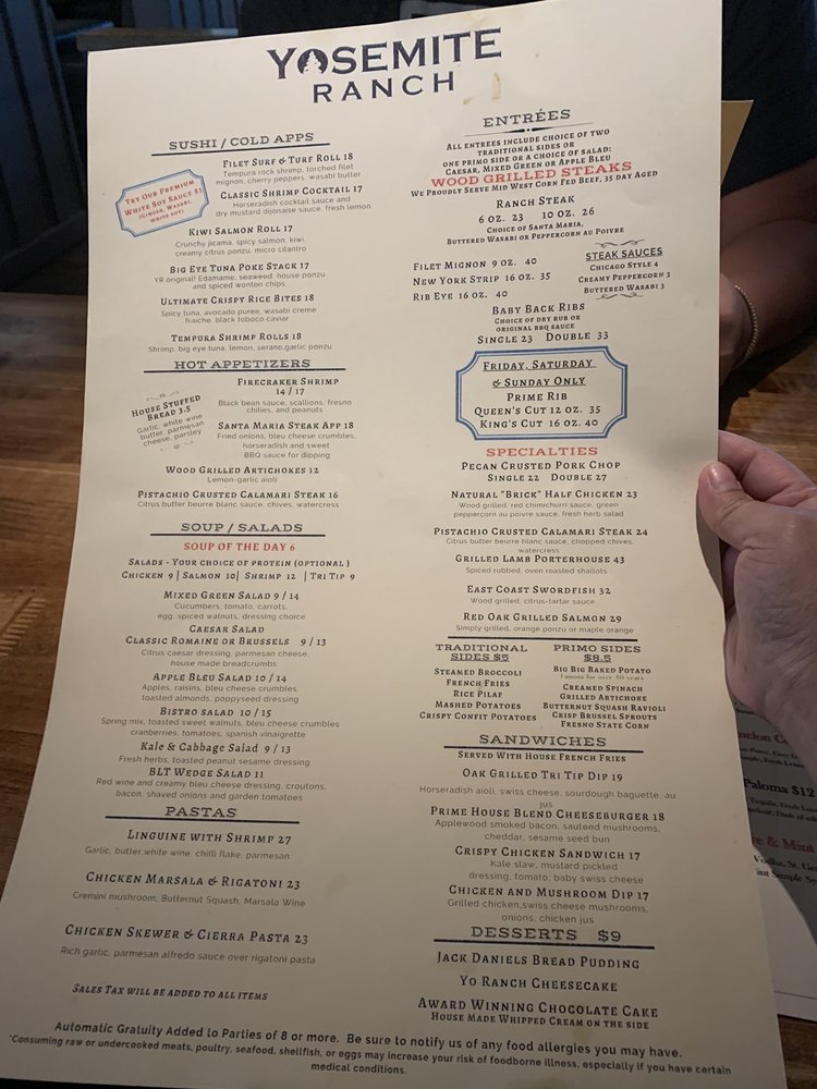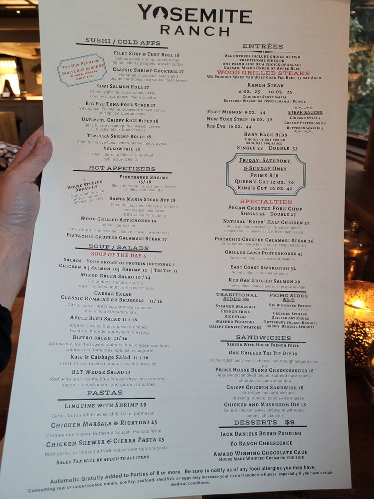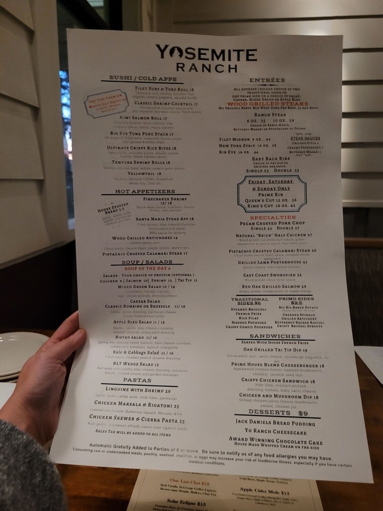 Yosemite Ranch Menu (Update 2025)